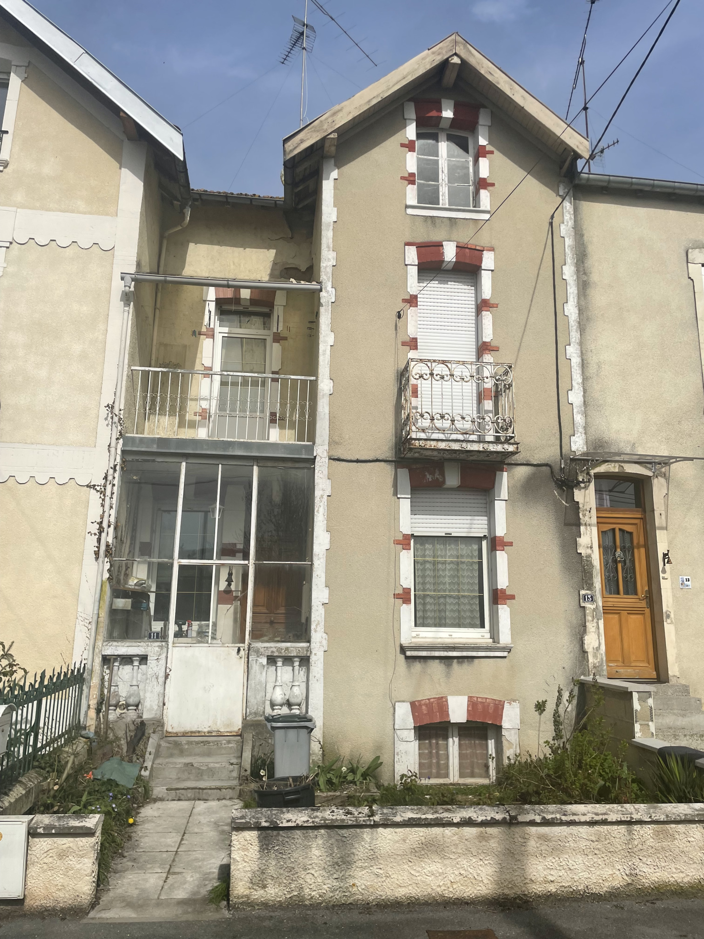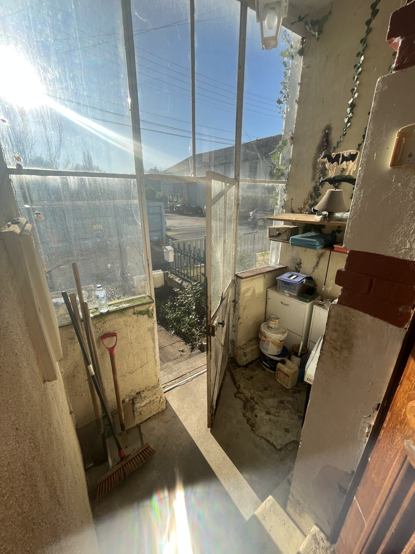 * Au RDC : verrière d'entrée, couloir, cuisine aménagée, salon-séjour traversant, WC.