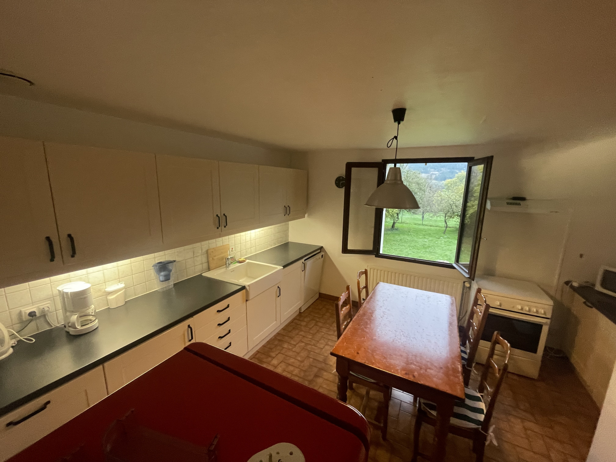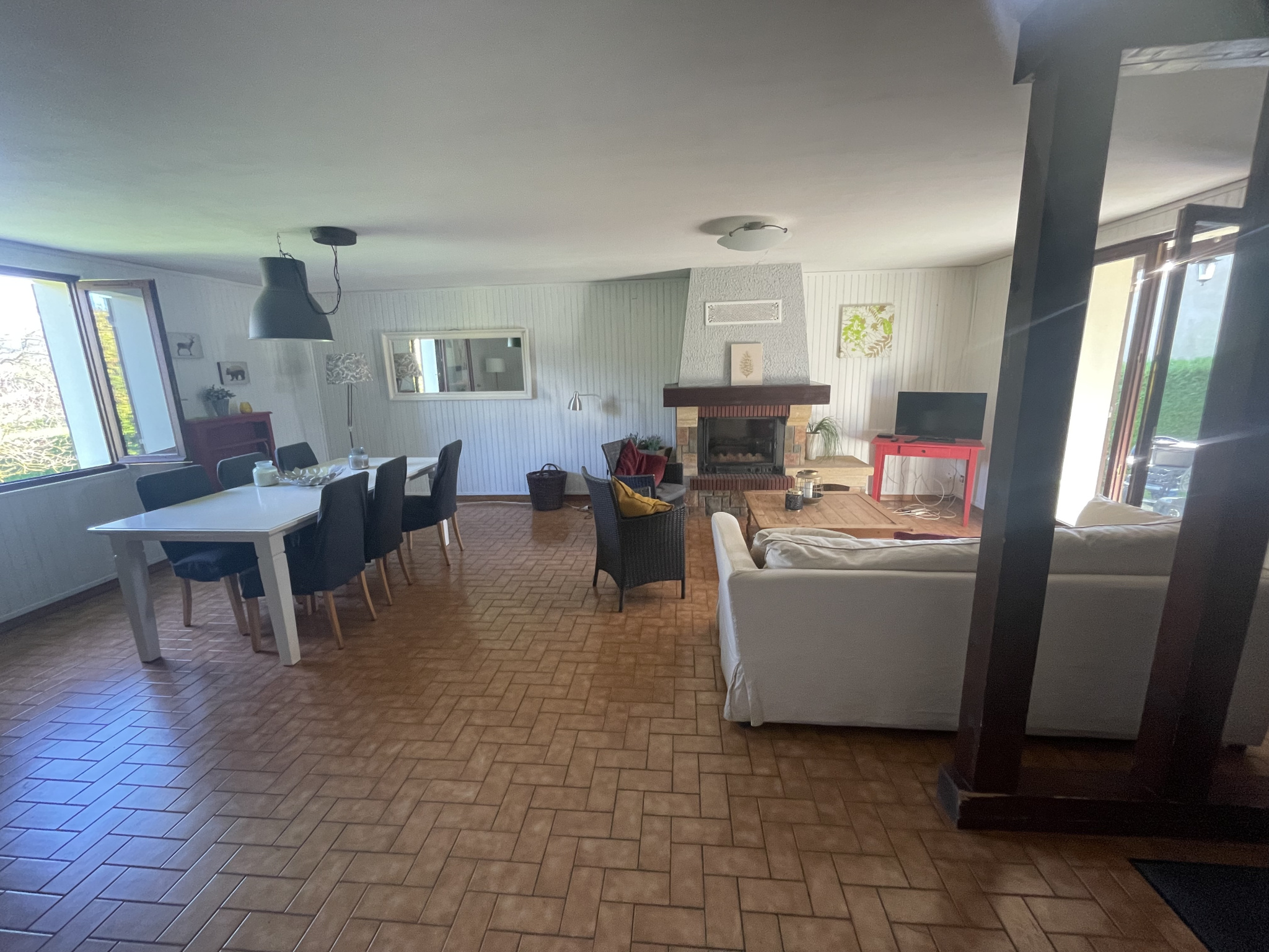 à propos de cebienpavillon individuel, élevé sur sous-sol complet, semi enterré, comprenant : – en rez-de-jardin : Garage, coin chaufferie, Garage. – en rez-de-chaussée : grande pièce à vivre donnant sur terrasse, avant, avec cheminée avec insert, Couloir, cuisine, aménagée, trois chambres, débarras, WC, salle d'eau avec douche italienne. Vaste terrain clos. Le tout sur 1500 m².